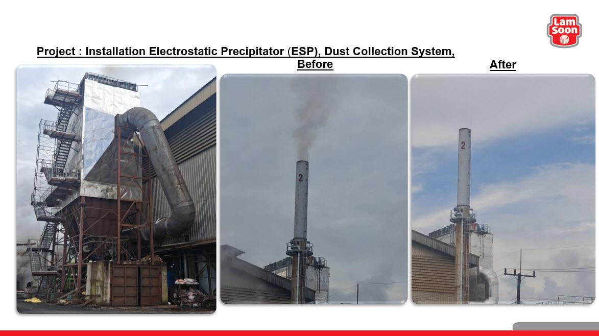 Project Outcomes:The installation of the ESP system has created environmental value in several areas: Air Pollution Reduction: Outcome/Value: Cleaner air, reduced emissions of particulate matter (PM2.5) and soot. Health Promotion for Employees and the Public: Outcome/Value: Reduction in respiratory diseases and pollution-related illnesses. Green Image of the Organization: Outcome/Value: Demonstrates environmental responsibility in line with ESG principles. Long-Term Environmental Impact Reduction: Outcome/Value: Sustainable reduction in dust accumulation in ecosystems—soil, water, and air.
