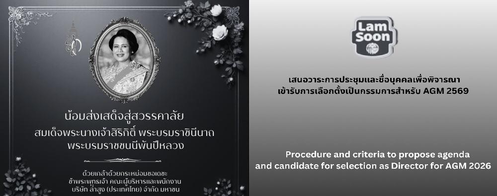 เมื่อวันที่ 28 ตุลาคม 2568 บริษัท ล่ำสูง (ประเทศไทย) จำกัด (มหาชน) ได้รับคะแนนการประเมินในระดับ 5 ดาว “ดีเลิศ”...
